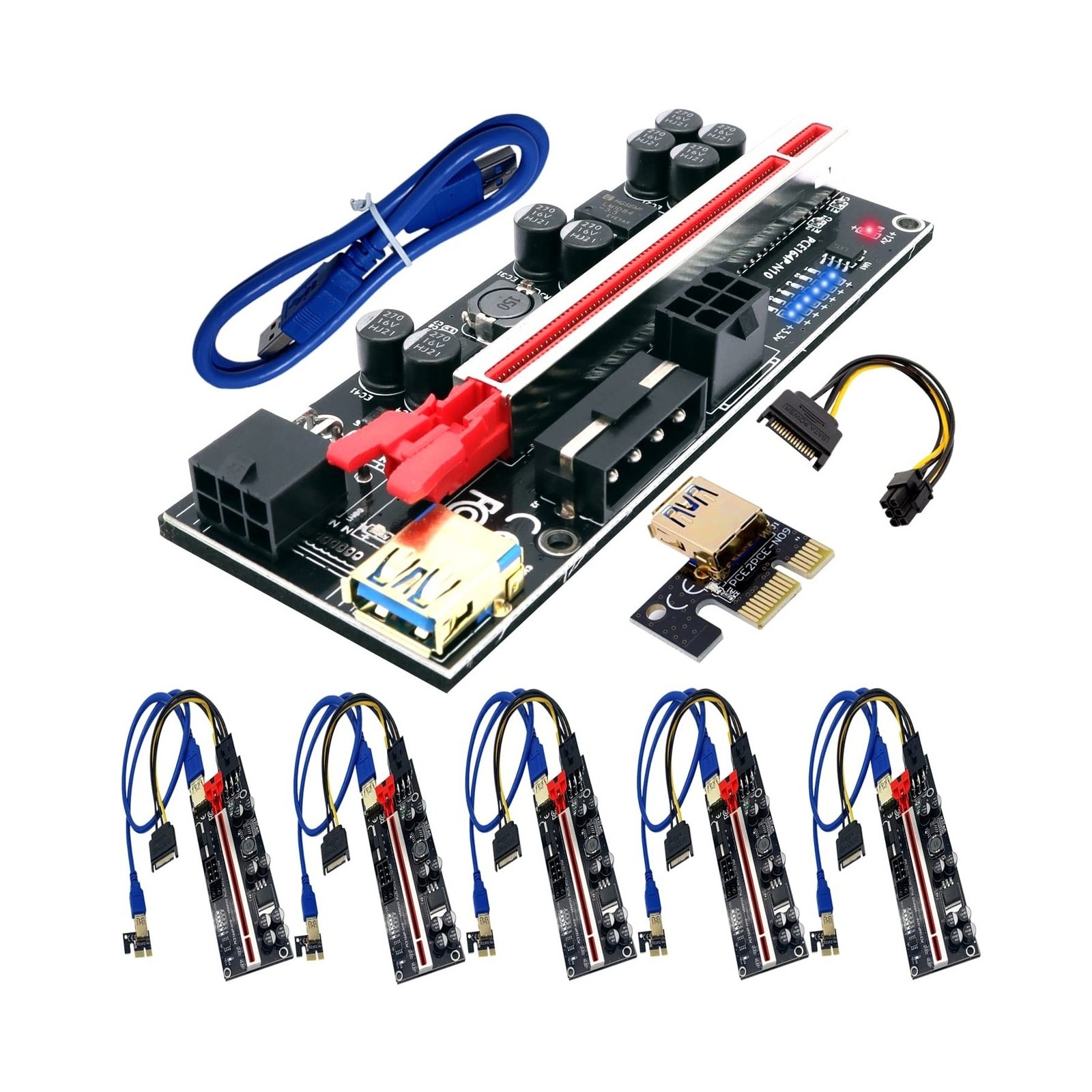 BTBcoin 6 Pack PCI-E Riser 010S GPU Riser Adapter Card PCI-Express 1X to 16X …