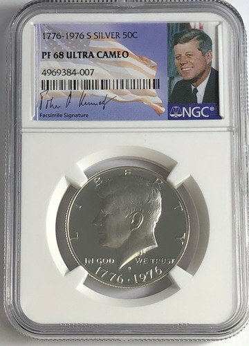 1776-1976 S NGC PF68 Ultra Cameo Proof Silver Kennedy Half JFK Coin Signature Lb