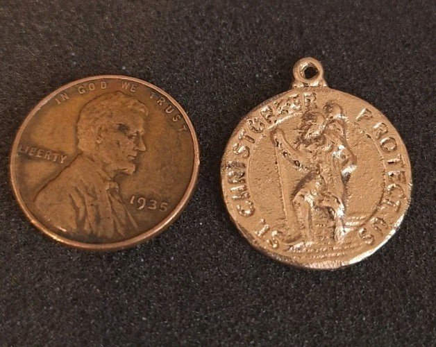 4.1 Grams Solid Yellow Gold Rustic St. Christopher Charm (Acid tests 14k) Scrap?