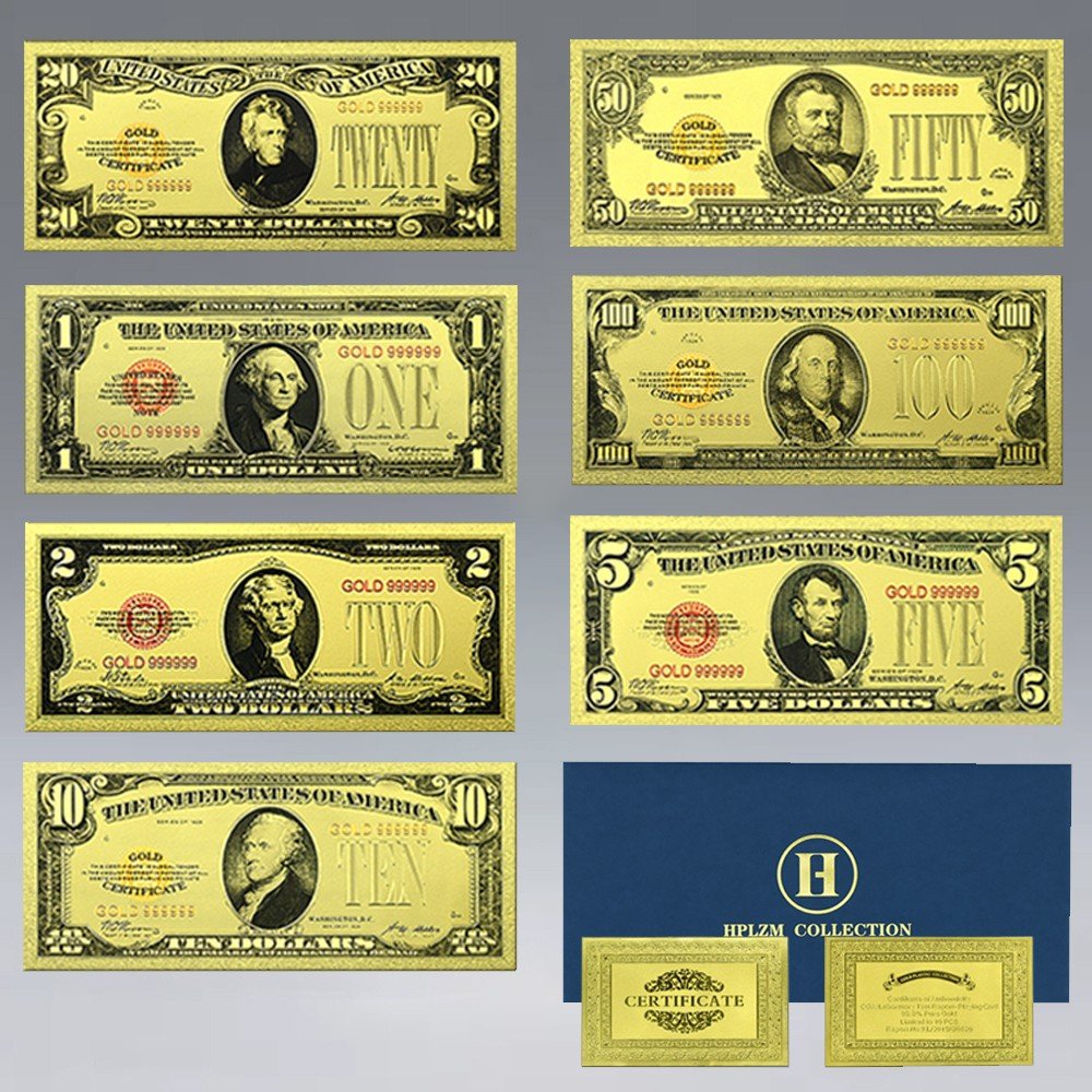 7-Piece Gold Foil US Dollar Banknote Set Vintage Design with Certificate Gifts