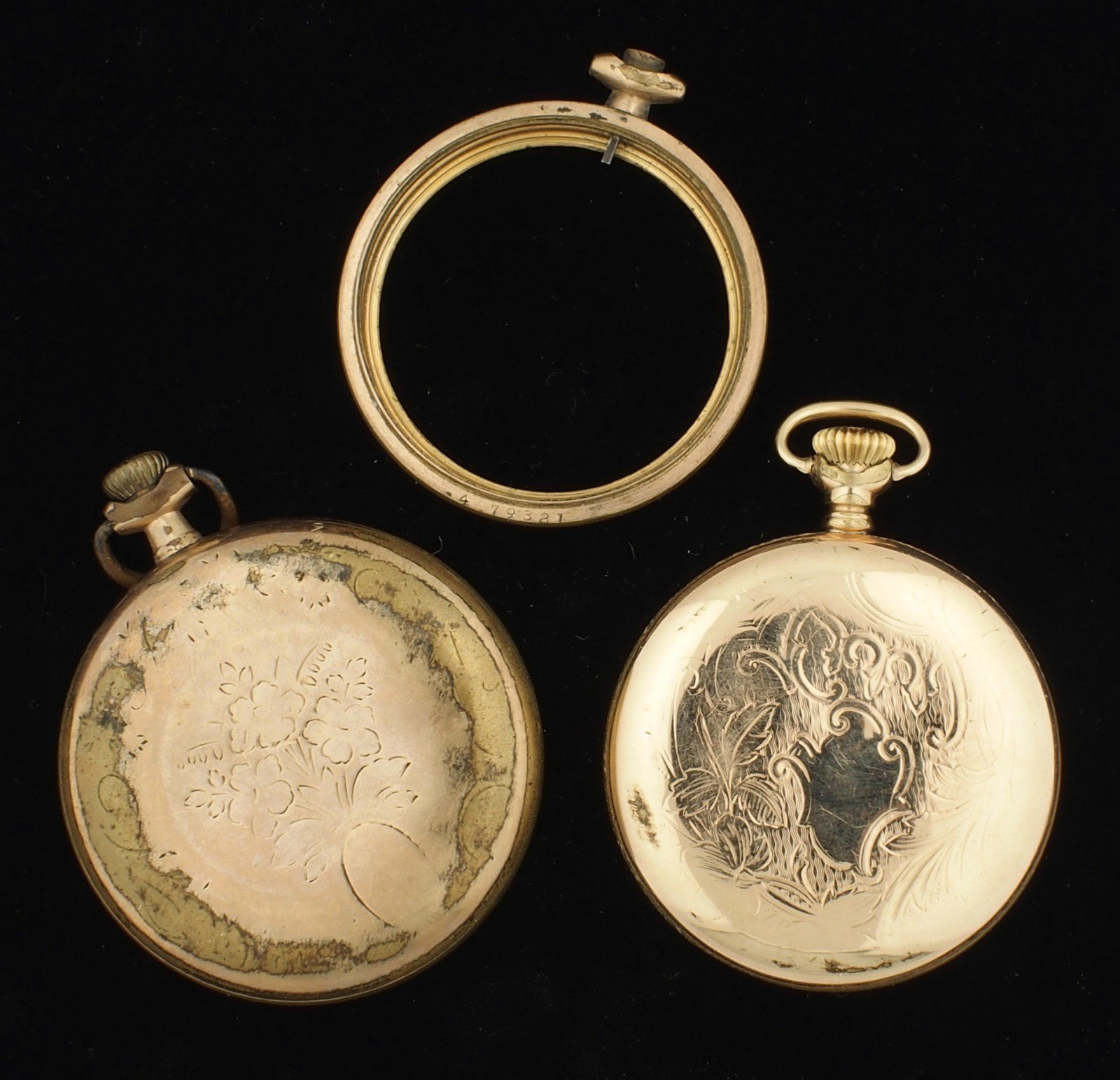 Lot of Gold Filled Scrap Pocket Watch Cases & Parts 62g Dueber Special 20 Year +